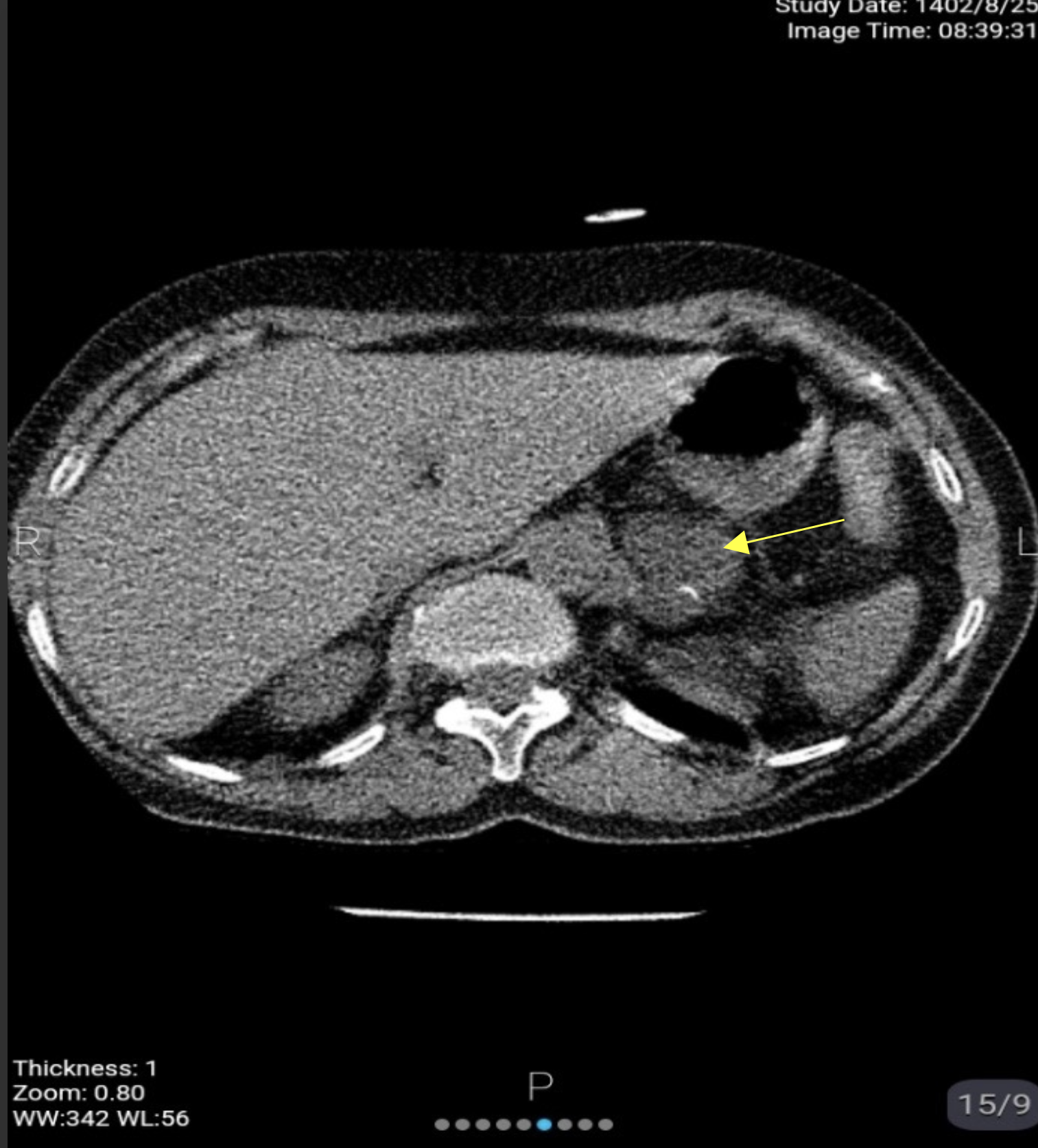 Figure 3. Spiral abdominopelvic CT Scan without contrast